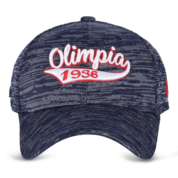 67% poliestere, 33% nylon. Cappellino visiera con fascetta regolabile. Logo Olimpia Milano.