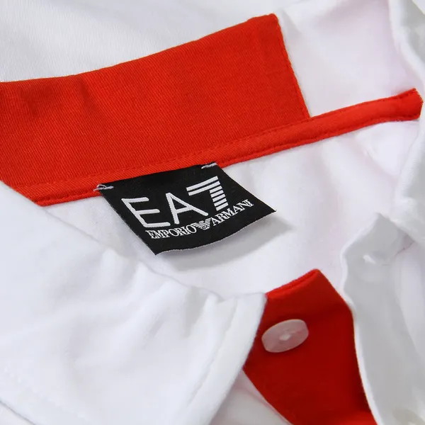 95% cotone, 5% elastan. Polo a manica corta, colletto con bottoni. Loghi EA7 e Olimpia Milano sul davanti.