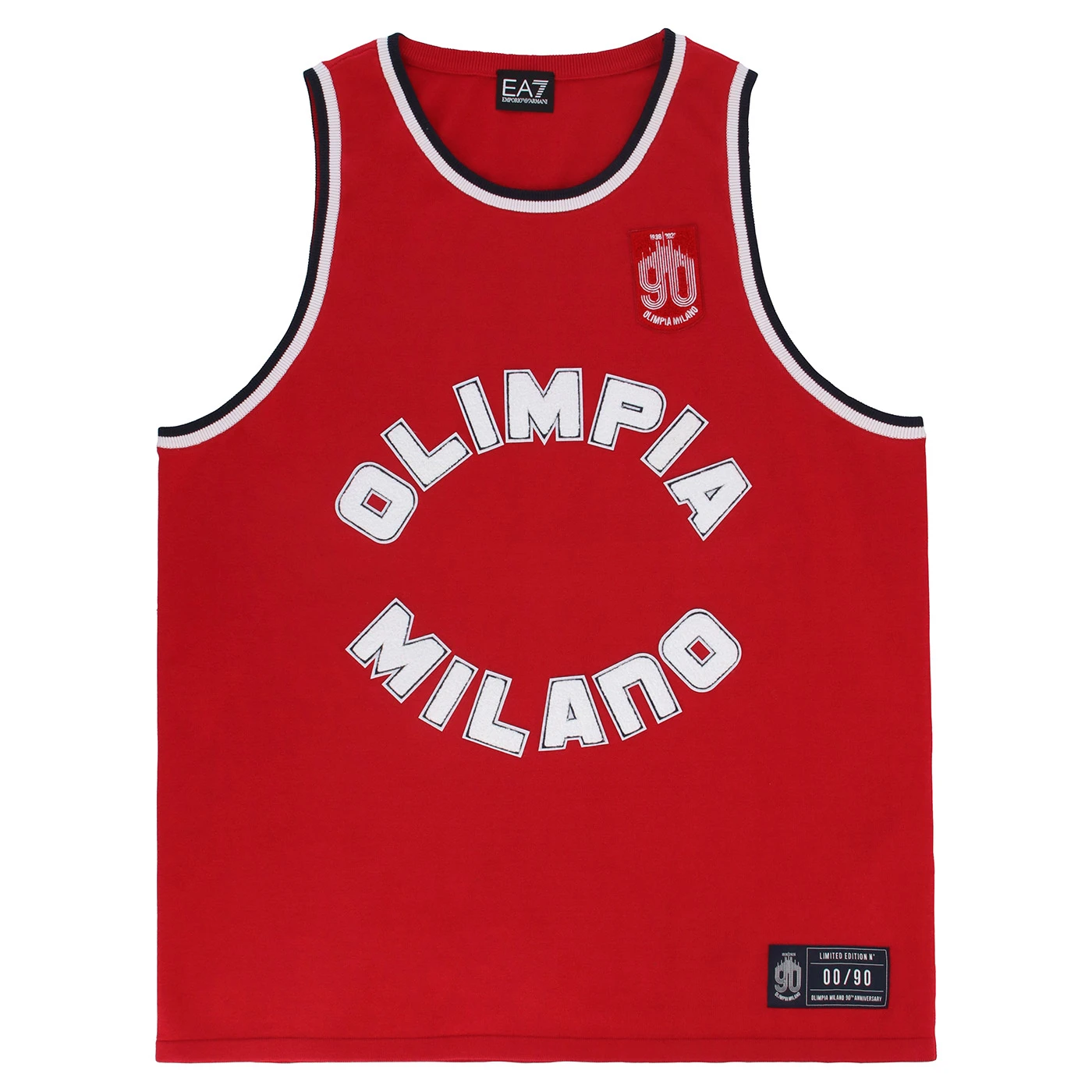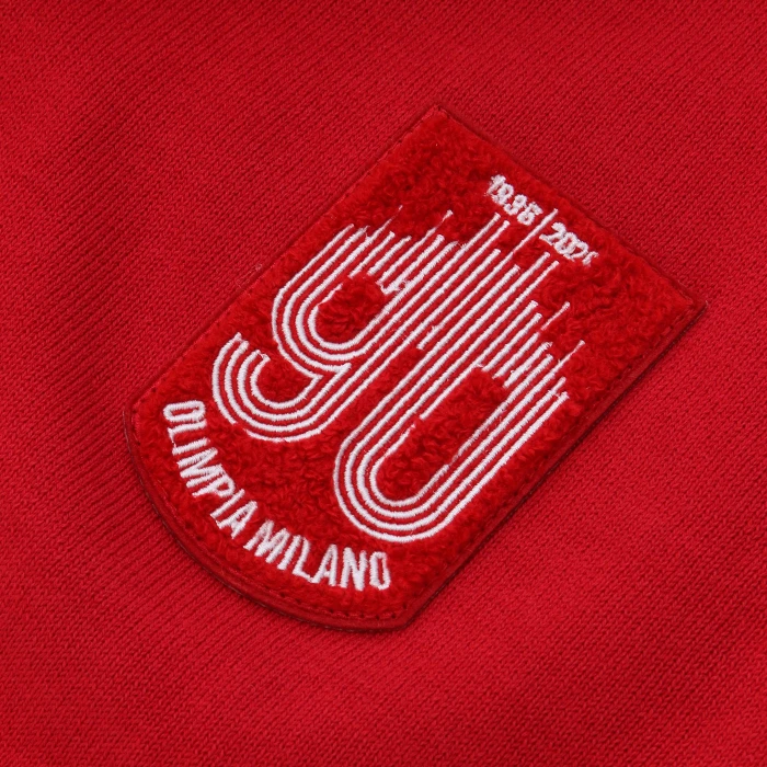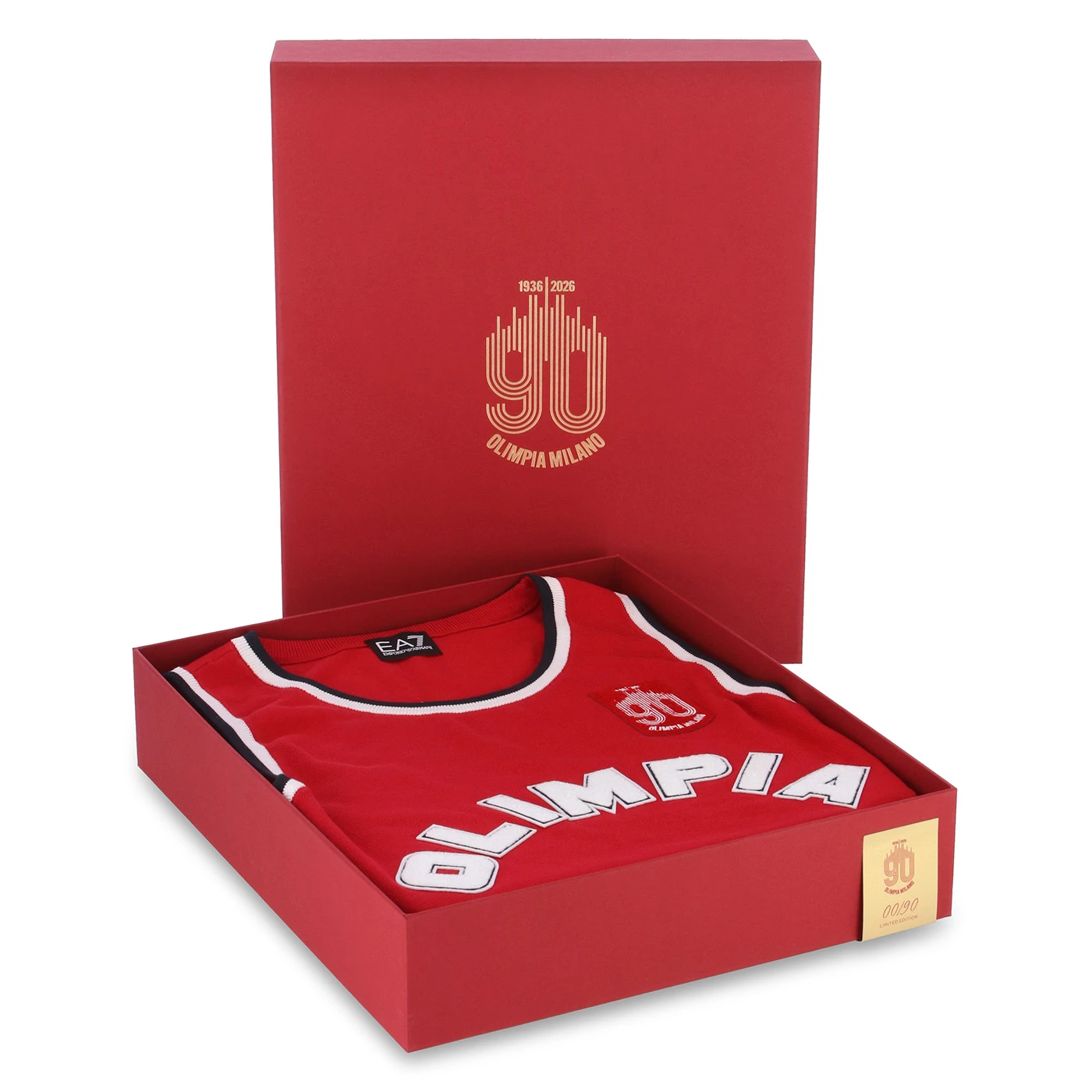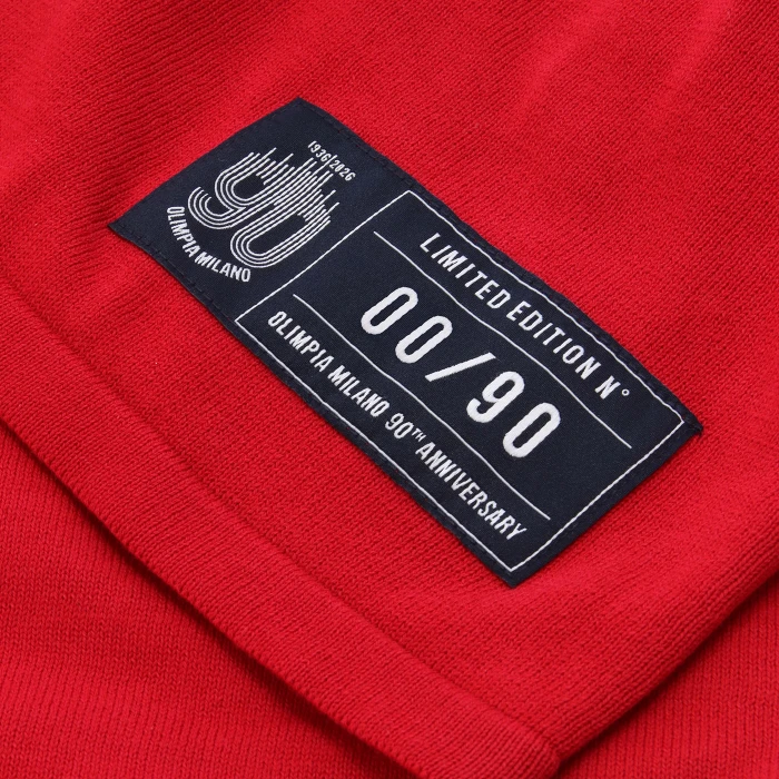 Pensato per celebrare i novant’anni di storia di Olimpia Milano, questo kit premium esclusivo rende omaggio alle prime divise iconiche del club attraverso un design essenziale, raffinato e ricco di contenuti sartoriali. La canotta è realizzata in pregiato cotone nel distintivo rosso Olimpia, con girocollo e giromanica rifiniti in smacchinato tricolore nei colori simbolo della squadra: rosso, bianco e blu Armani. La scritta “Olimpia Milano” è applicata con tecnica transfer ad effetto punto spugna, mentre sul petto spicca il patch celebrativo del 90° anniversario, realizzato in jacquard. Il pantaloncino coordinato alla canotta, è impreziosito dagli stessi dettagli tricolore. A completare l’esperienza, il kit è custodito all’interno di un box premium dedicato, impreziosito dal logo celebrativo del 90° anniversario di Olimpia Milano. Ogni confezione è numerata singolarmente, rendendo il prodotto ancora più esclusivo e ideale anche come oggetto da collezione. Prodotto in edizione limitata e riservata a soli 90 esemplari, ogni kit è numerato singolarmente grazie a un’etichetta esterna cucita che riporta il numero progressivo da 1 a 90. Un capo esclusivo, pensato per collezionisti e tifosi che desiderano indossare un frammento autentico della storia di Olimpia Milano